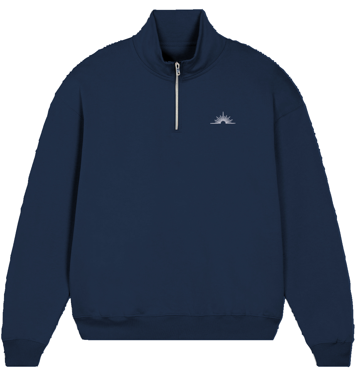 Unser Quarter-Zip Sweater vereint sportliche Lässigkeit mit mediterranem Flair. Dank dem oversized Schnitt bietet er maximale Bewegungsfreiheit und einen modernen Look – perfekt für entspannte Tage an Bord, unterwegs im Van oder für gemütliche Abende in der Stadt. Der Viertelreissverschluss sorgt für Flexibilität zwischen lässig offen und angenehm geschlossen.